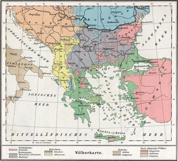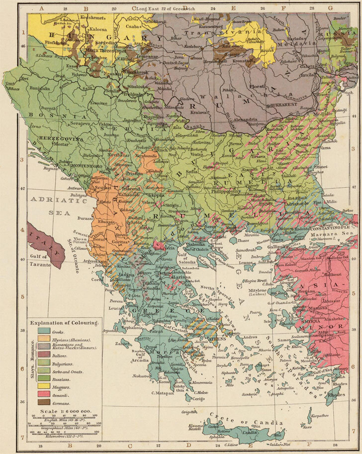 Ethnographic Map of Albania, Macedonia & Northern Greece, 1887