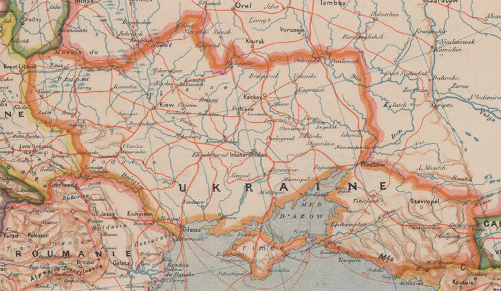 Linguistic Map of Ukraine (Southern Russia), 1871